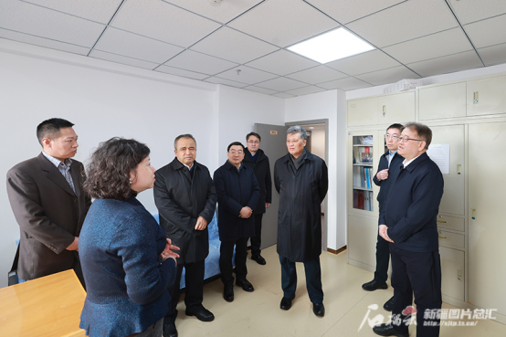 2月5日,自治区党委书记马兴瑞、自治区主席艾尔肯·吐尼亚孜在自治区统计局国民经济核算处,详细询问各项工作进展。石榴云/新疆日报记者崔志坚摄