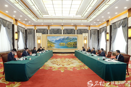 11月6日,自治区党委书记陈小江、自治区主席艾尔肯·吐尼亚孜在乌鲁木齐会见乌兹别克斯坦驻华大使阿尔济耶夫。石榴云/新疆日报记者谢龙摄