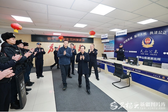 2月20日,自治区党委书记陈小江在乌鲁木齐市天山区黑甲山街道派出所,看望慰问执勤民警、辅警,详细了解节日巡防、警情处置、便民服务等工作开展情况。石榴云/新疆日报记者崔志坚摄