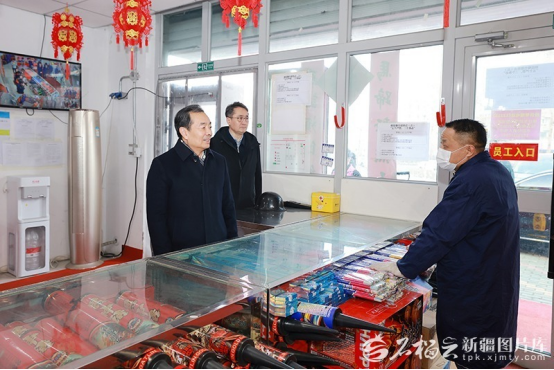 2月20日,自治区党委书记陈小江在乌鲁木齐高新区(新市区)一处烟花爆竹直营店,向经营人员致以新春祝福,详细了解烟花爆竹产品来源、销售和安全防范措施落实等情况。石榴云/新疆日报记者崔志坚摄