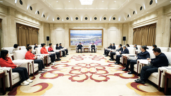 1月29日,自治区党委书记陈小江,自治区党委副书记、自治区主席艾尔肯·吐尼亚孜会见国家体育总局局长、党组书记高志丹一行。天山网-新疆日报记者谢龙摄