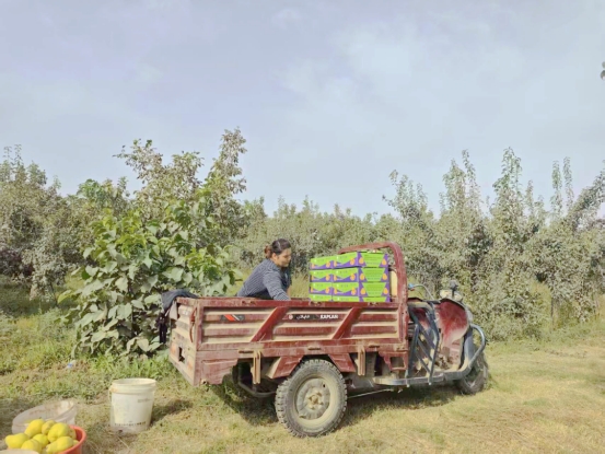 丑梨集苹果与香梨的风味特点,果肉细腻、多汁甘甜,产品认可度高。得益于当地土壤与光照条件,其甜度表现突出,且具有管理简便、病虫害少的特性,种植成本较低,经济效益显著,这也让他决心扩大了种植面积。