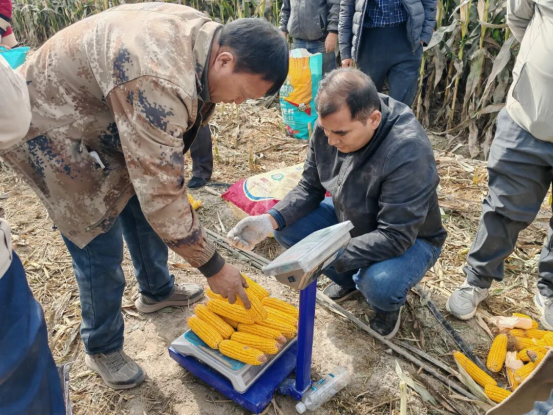 “第一个是免耕抢种技术,第二个是合理密植,第三个是滴灌水肥一体化精准调控技术,第四个是病虫害综合防控技术措施。”新疆维吾尔自治区农业科学院作物研究所玉米团队研究员赛力汗·赛在验收现场介绍,“咱们这块示范田就是按照每亩7400株的密度播种,通过四项技术协同发力,实现了资源高效利用和产量突破。”
