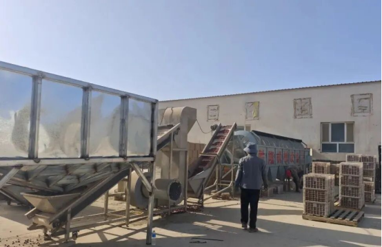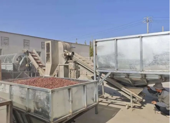 当日,记者还走进了泽普丽农果品农民专业合作社,远远就能听到机器的轰鸣声。合作社内,工人们都有条不紊地忙碌着,操控分级机按照红枣个头大小进行精准分级。分级后的红枣,被整齐地搬运到不同区域。