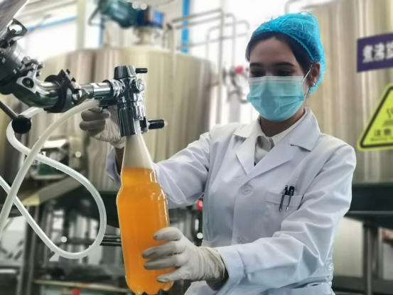 与传统啤酒相比,沙棘啤酒酒色清淡透明,泡沫洁白细腻,口感酸甜适度、苦味柔和,既保留了啤酒的醇厚风味,又融入了沙棘的天然果香,其中还富含维生素、类黄酮、不饱和脂肪酸及矿物质等丰富营养成分,兼具营养与保健功效,尤其适合不同年龄段消费群体饮用。除沙棘啤酒以外,新疆大漠金棘精酿啤酒有限公司还根据消费者的不同需求研发生产“黄金艾尔”“巧克力波特”“清风白露”等不同口感的啤酒,不断扩大市场占有率。