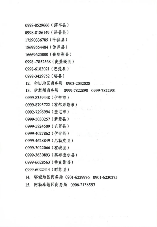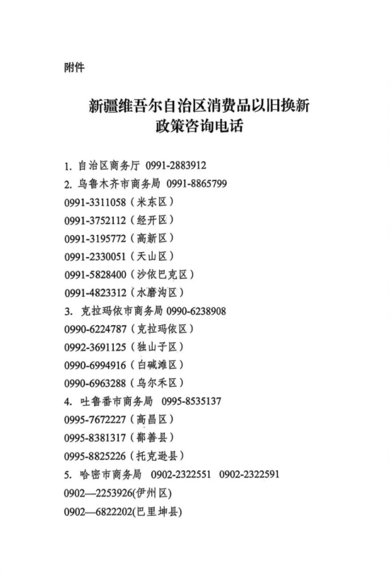 附件:新疆维吾尔自治区消费品以旧换新政策咨询电话