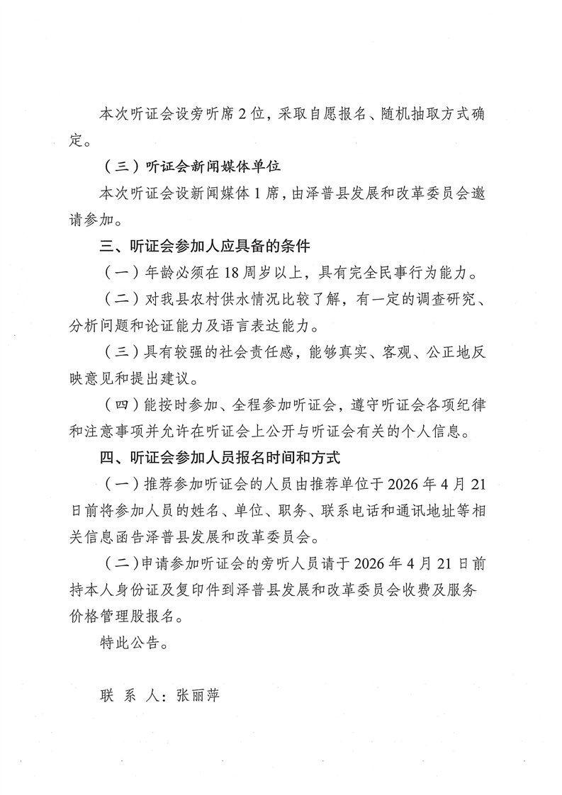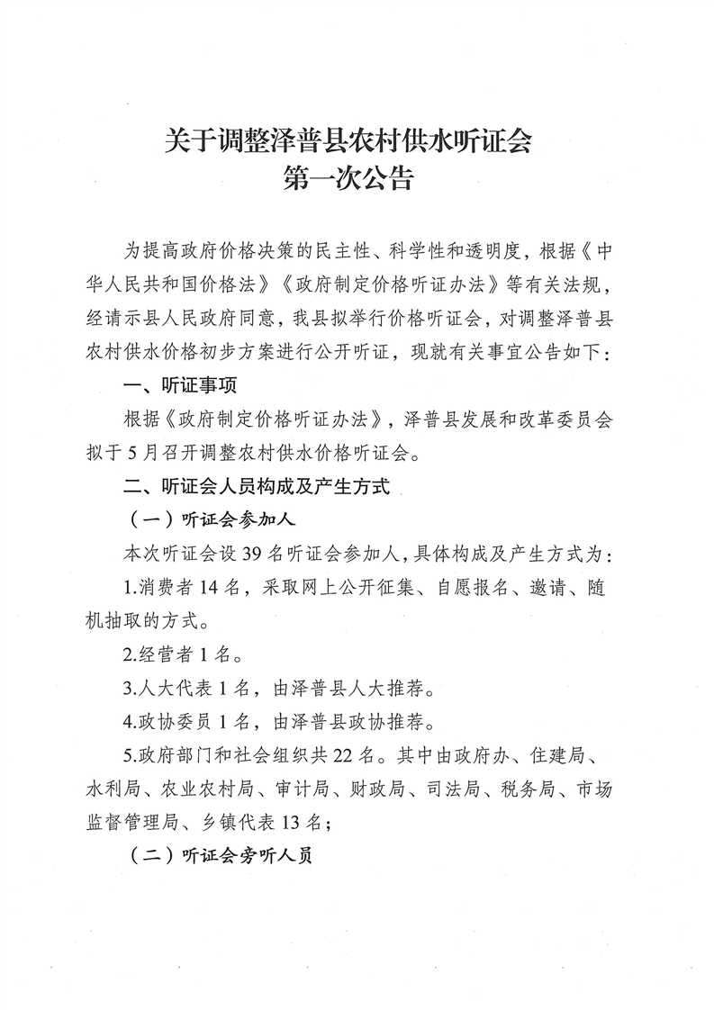 关于调整泽普县农村供水听证会第一次公告