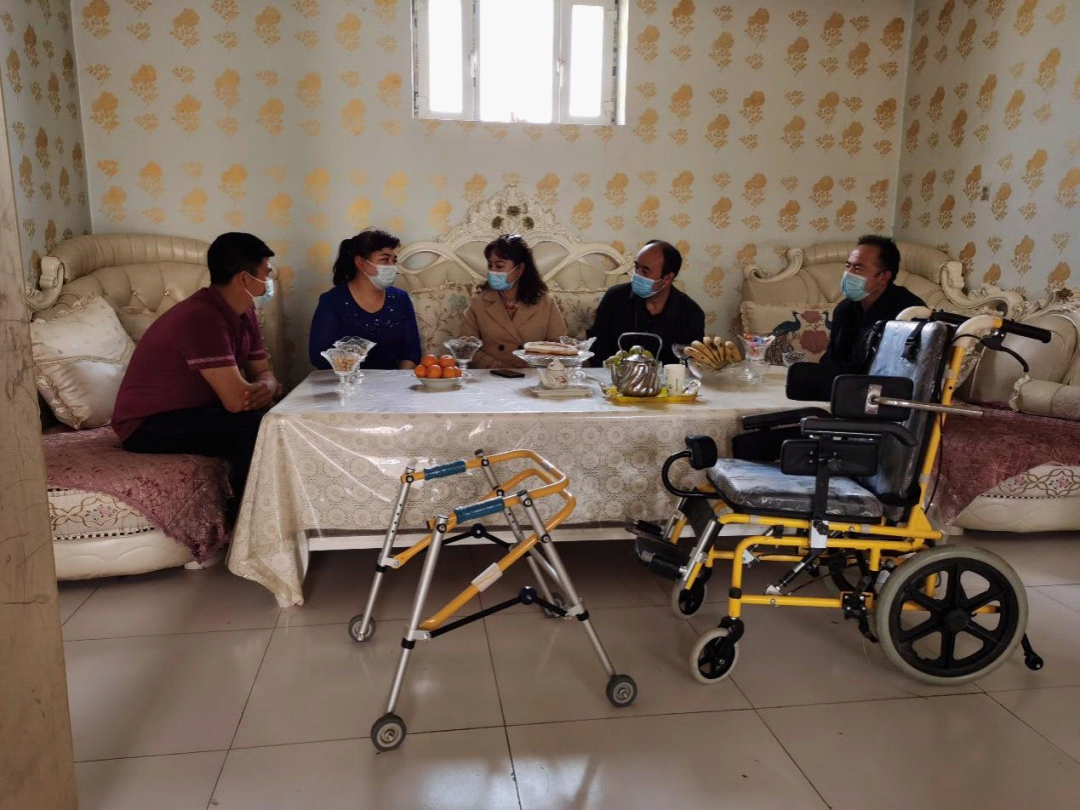 在第32次“全国助残日”来临之际,泽普县残联工作人员深入各乡镇、村(社区)开展走访活动,为他们送去辅助器具,进一步加大对残疾人的扶持力度,提高残疾人的自理能力,帮助残疾人更好地融入社会。“我的孩子早产导致先天性脑瘫,为了给孩子治疗,也花了很多钱,但是治疗效果都不是特别好。”泽普镇居民努尔古丽·艾斯提拉的儿子阿不都热依木·努尔买买提出生时就患有脑瘫,多年的奔波治疗已经花去了家中大多数积蓄,孩子的病情也没有好转。