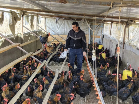 努尔比耶木·吐尔孙说:“我去年养了1200只芦花鸡净赚了8000元,还卖到了西藏。今年我又养了1400多只,叶城的收购方已经联系购买了。这批再养40多天就能卖了,这批卖完打算明年春天再养殖5000只鸡苗售卖,多挣点钱把日子过得更好。”