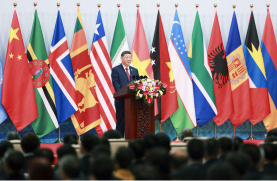 金秋时节,天朗气清。国家会议中心会场内,各国国旗和联合国旗帜组成恢弘旗阵。