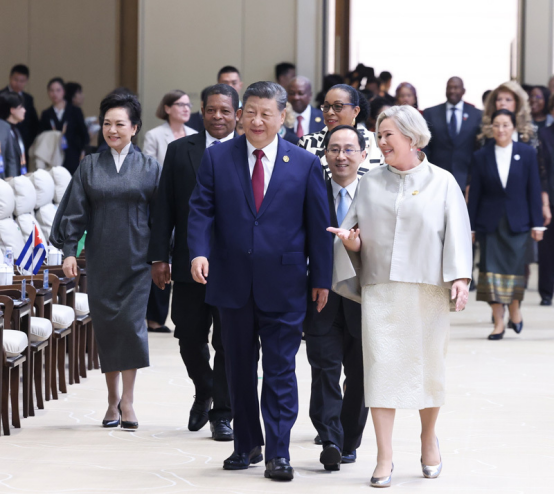 第四,共同书写促进全球妇女合作的崭新篇章。要支持妇女担当时代责任,深度参与全球治理,共享治理成果。支持联合国发挥核心作用,更多关注发展中国家妇女需求,为各国妇女搭建宽广的合作平台,推动形成美美与共的生动局面。
