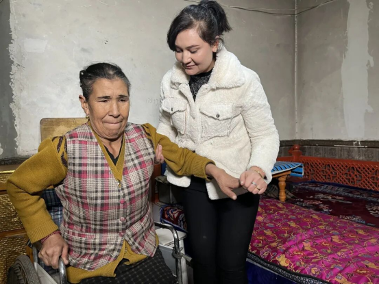 近日,记者跟随阿依库勒乡民政办干部走进阿依丁库勒村的纳瓦提罕•铁木尔家中,了解适老化设施、辅具使用情况。今年76岁的纳瓦提罕•铁木尔腿脚不便,生活只能半自理,日常行走、洗澡、如厕都存在摔倒隐患。泽普县民政局根据纳瓦提罕•铁木尔的需求,量身定制了适老化改造方案,为他们家配备了各类辅具,极大地提升了她生活空间的安全性与便利性。