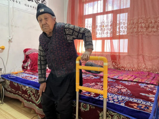 泽普县阿依库勒乡阿依丁库勒村村民谢克莱•麦托合提说:“我们家装了适老化设备以后,我奶奶的生活方便了很多,家里有扶手、防滑垫,再也不用担心她摔倒了。”