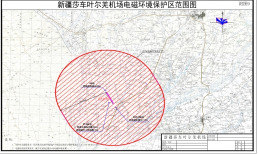 图1莎车叶尔羌机场飞行区电磁环境保护区域