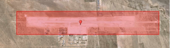 莎车机场跑道保护区以跑道中线及其两端延长线为基准,分别向两侧延伸600米,宽度1000米所划定的区域,如下图红色矩形区域所示。