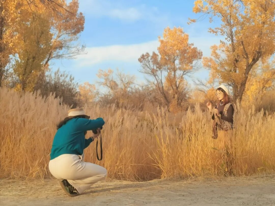 广东省广州市游客戴伟成说:“这里给我的感觉是有水面、有绿叶、有金黄的胡杨,非常理想。如果从照片的角度来看,有颜色对比、有深有浅、有倒影,是非常满意的。明年我已经约好我的朋友,一起来这里。”