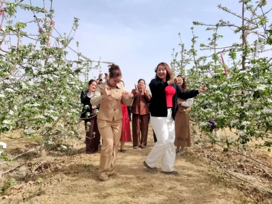 甘肃游客周晓露说:“现在的苹果花开得正好、很美,拍出来的照片也特别出片。一边赏花一边参加活动,心情特别舒畅。”