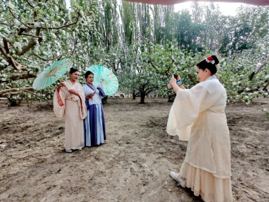 内蒙古游客张佳怡说:“第一次看到这么大规模的苹果花海,特别震撼,空气里都是淡淡的花香,风景特别出片,能在边疆看到这样的美景,真是太惊喜、太值得了。”