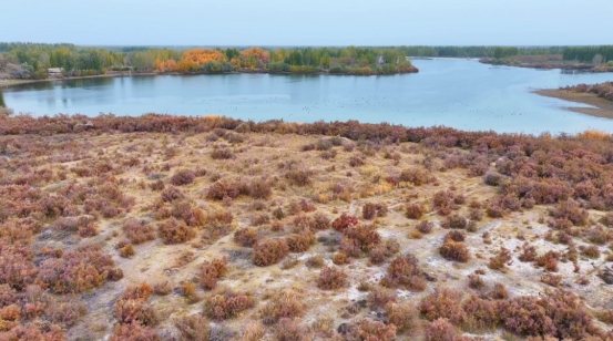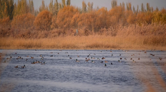 11月8日,当记者步入泽普叶尔羌河国家湿地公园内看到,各类植被绵延四方,与远处的水域构成连片的绝美图景,各种鸟类在水面嬉戏着,有几只鸟儿轻轻落在水面上,溅起一朵朵水花。其他鸟儿在天空中翱翔,它们的身影划过水面,给这平静的画面增添了几分灵动。曾经稀疏的鸟鸣如今已成日常交响,湿地的每一处蜕变都印在周边群众的生活里。
