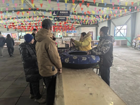 游客们挑选雪圈